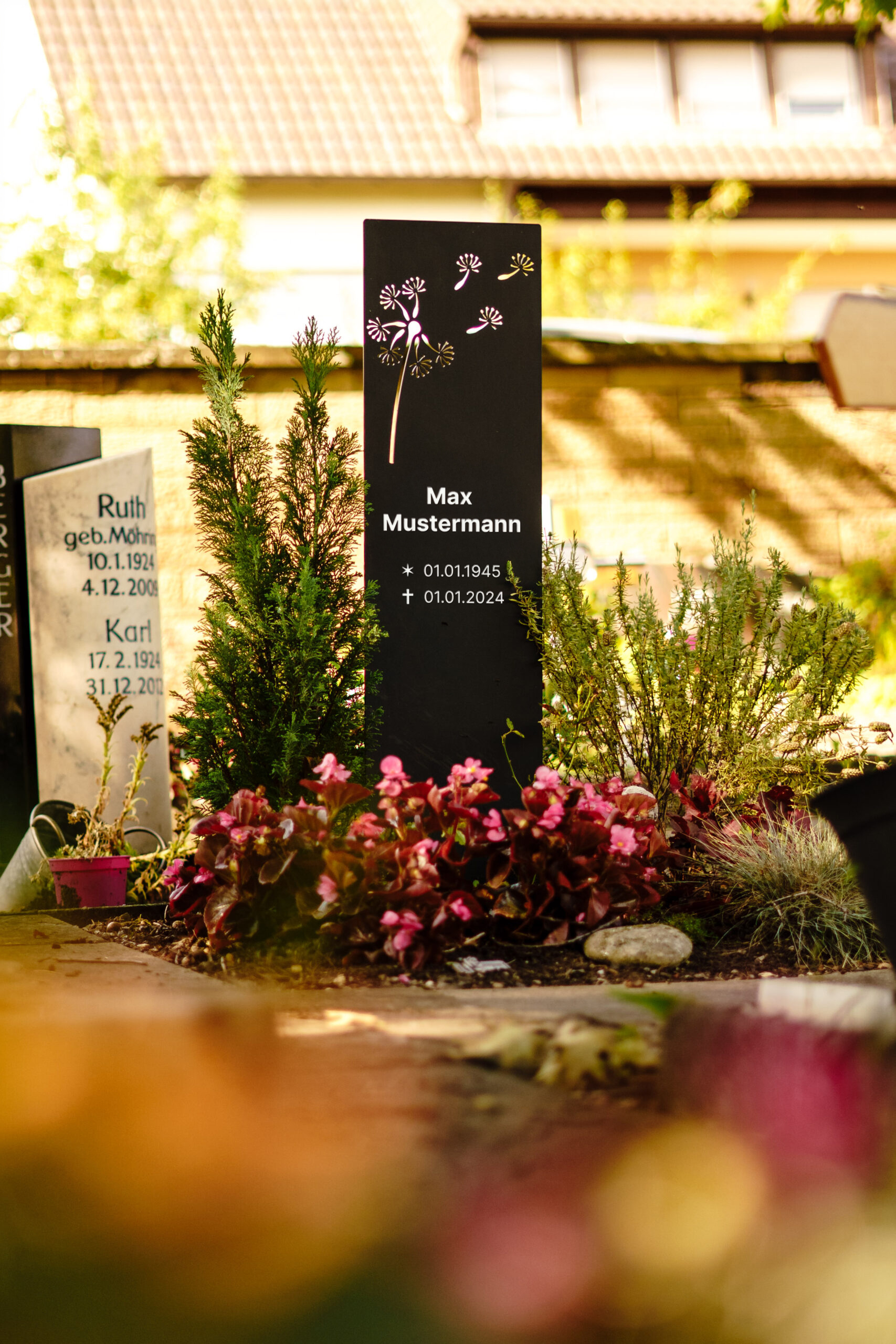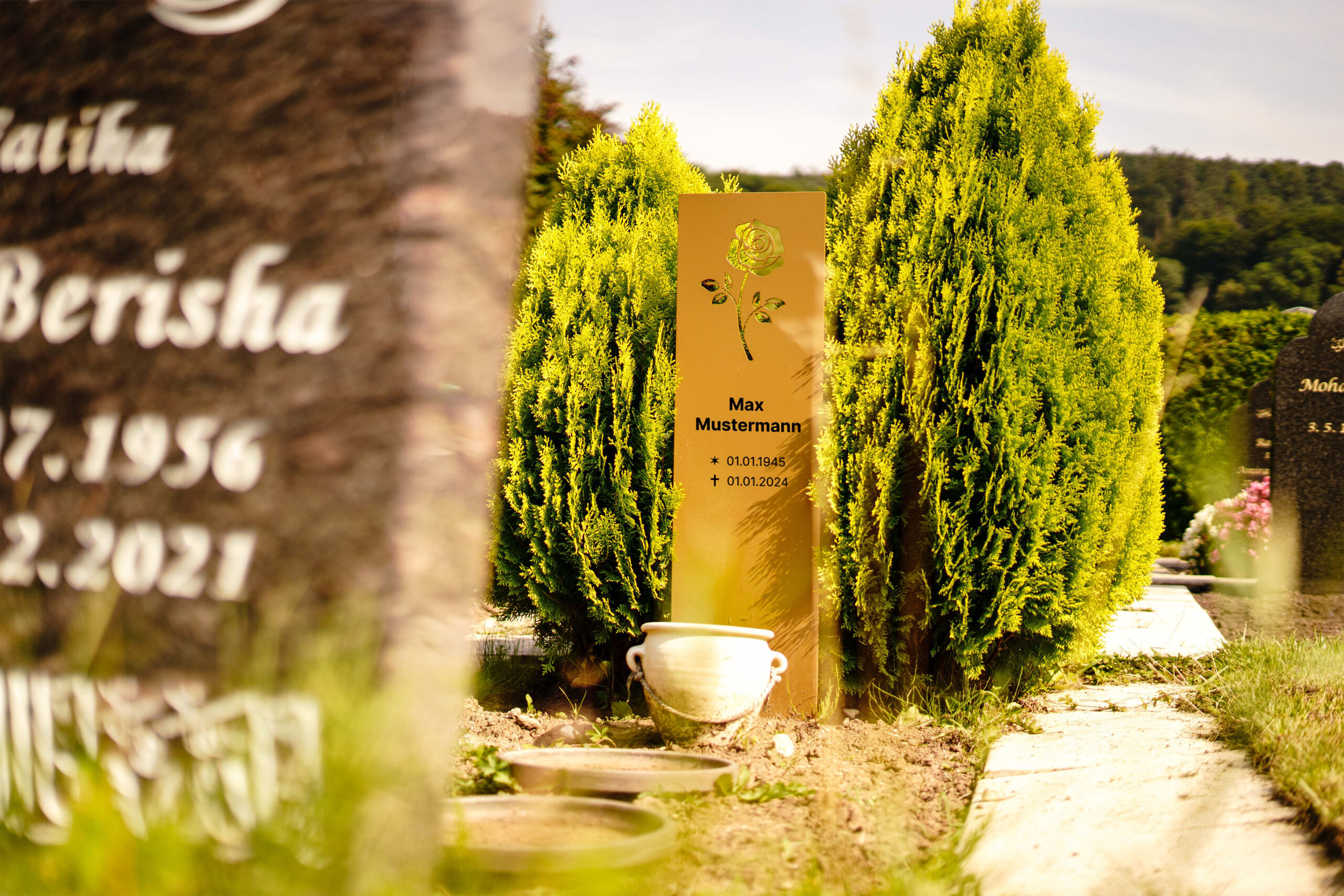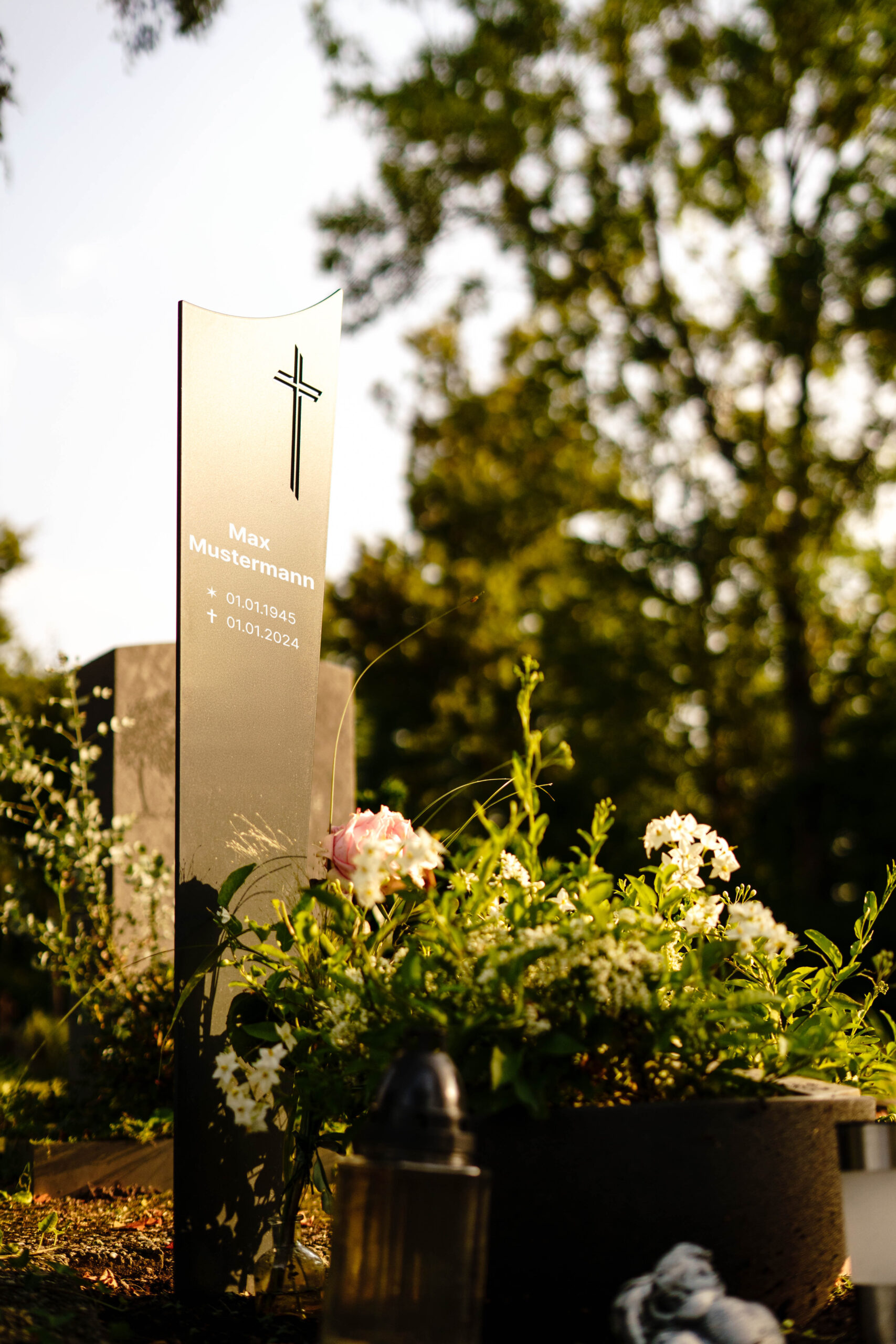 Beziehen Sie zur Beisetzung unsere modernen Grabstelen direkt bei Ihrem Bestatter.