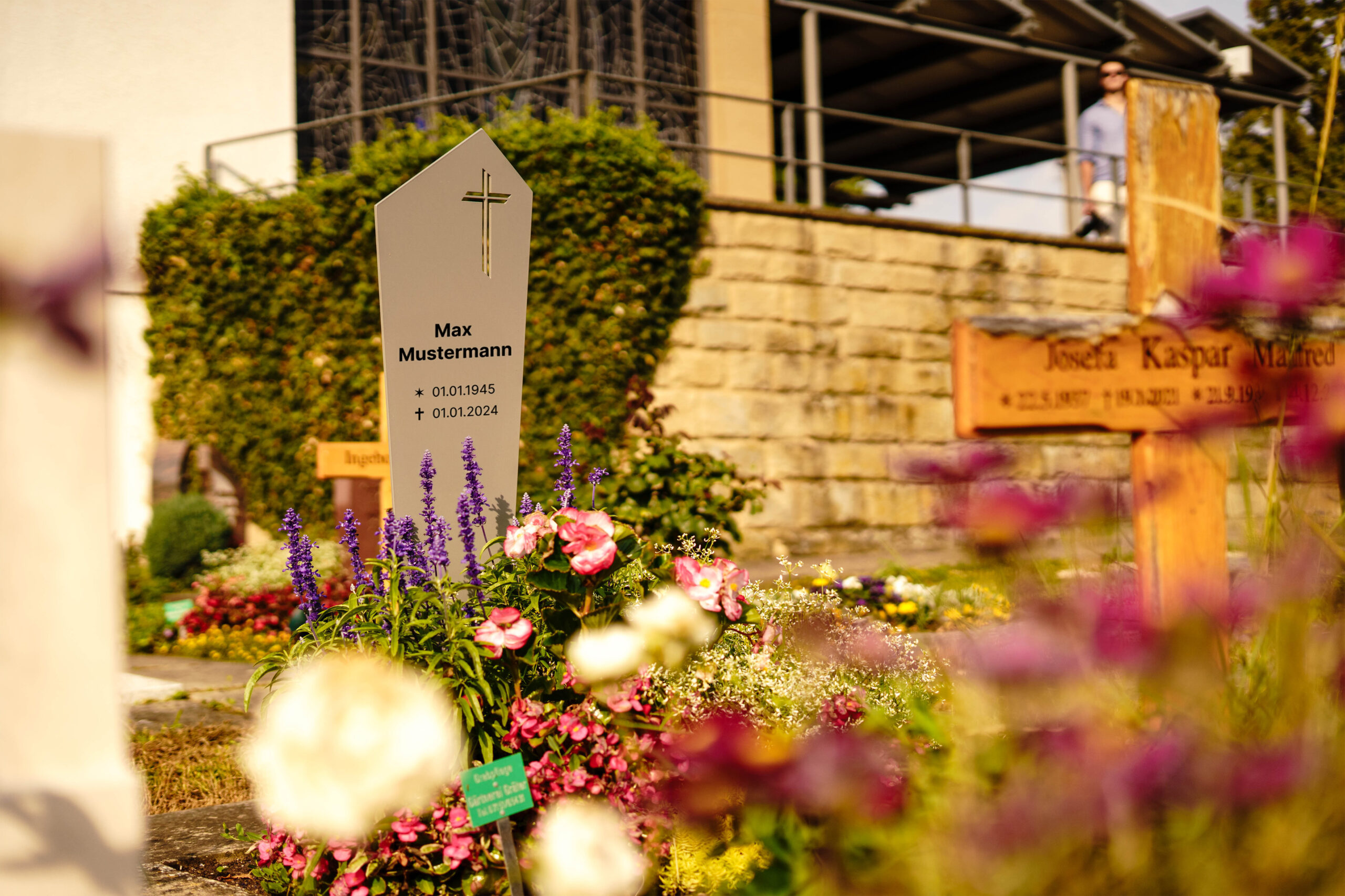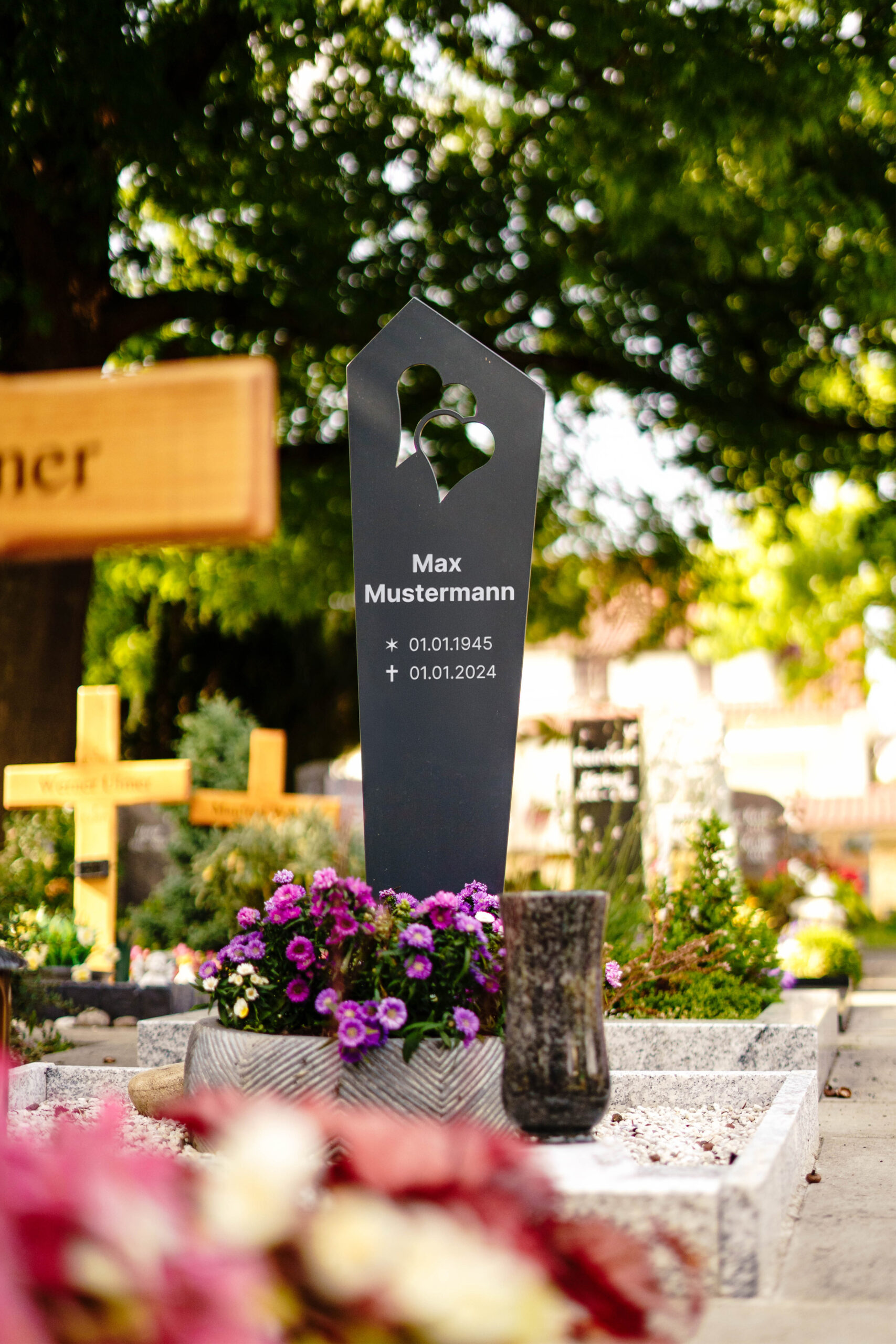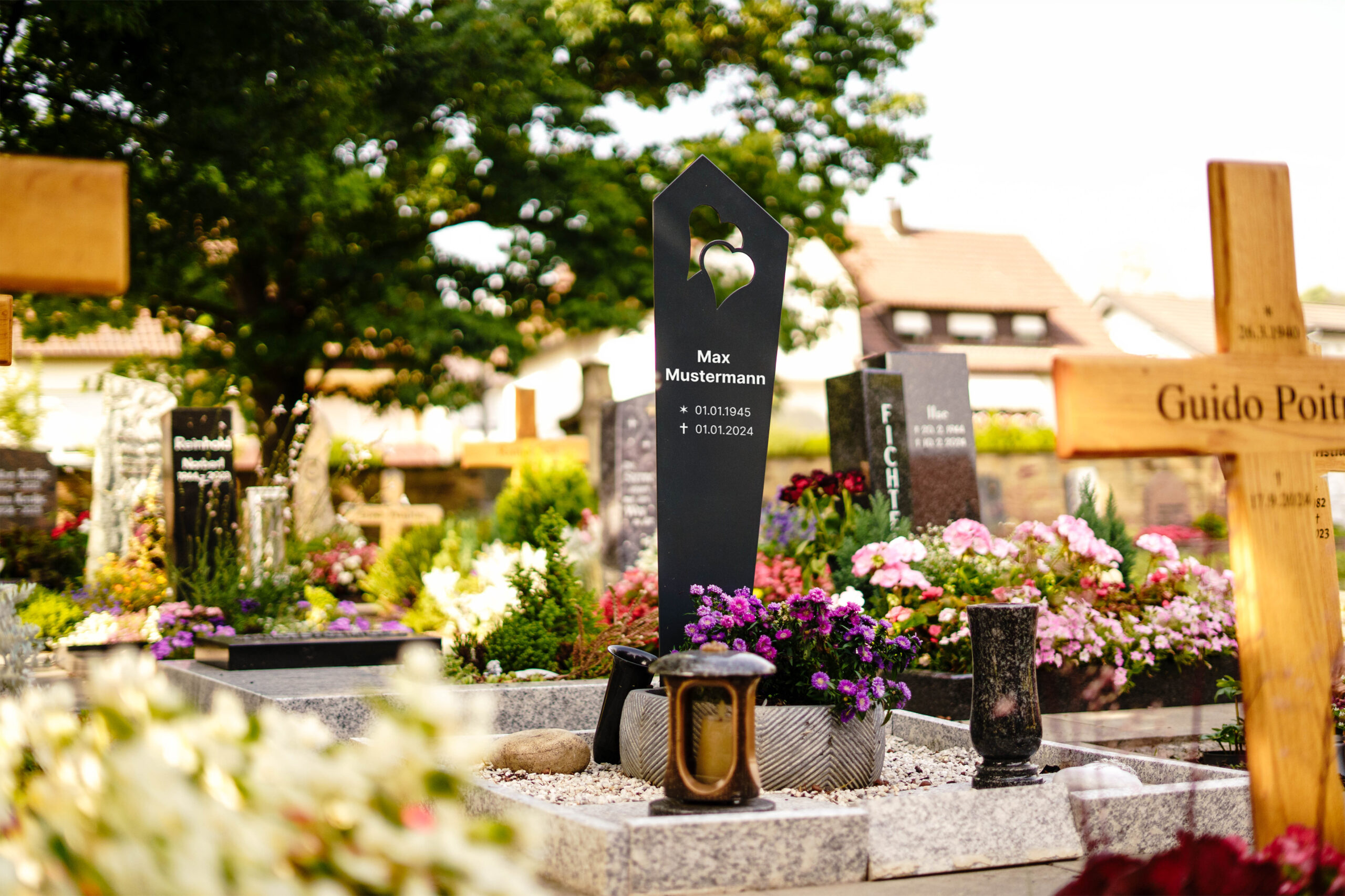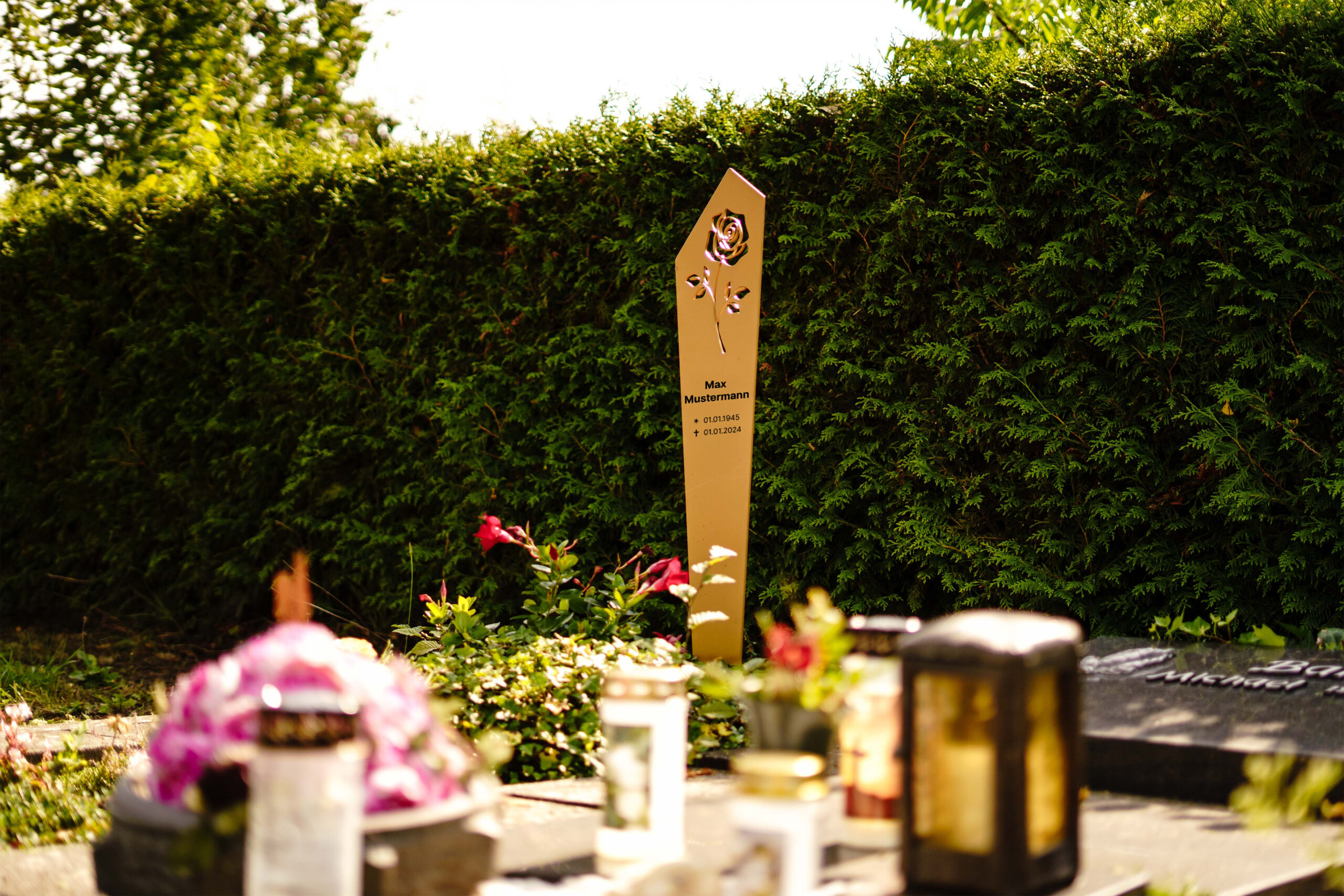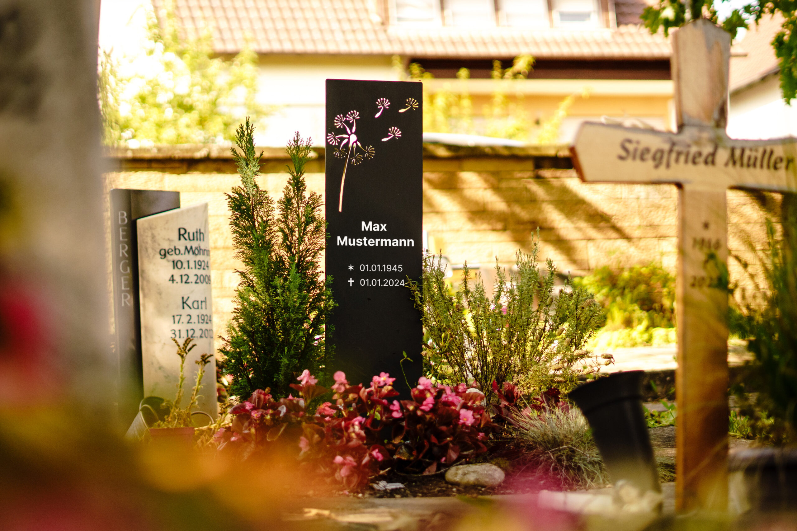 Ab dem Zeitpunkt der Bestattung wird Ihre individuelle Grabstele als Behelfsgrabzeichen angebracht.
