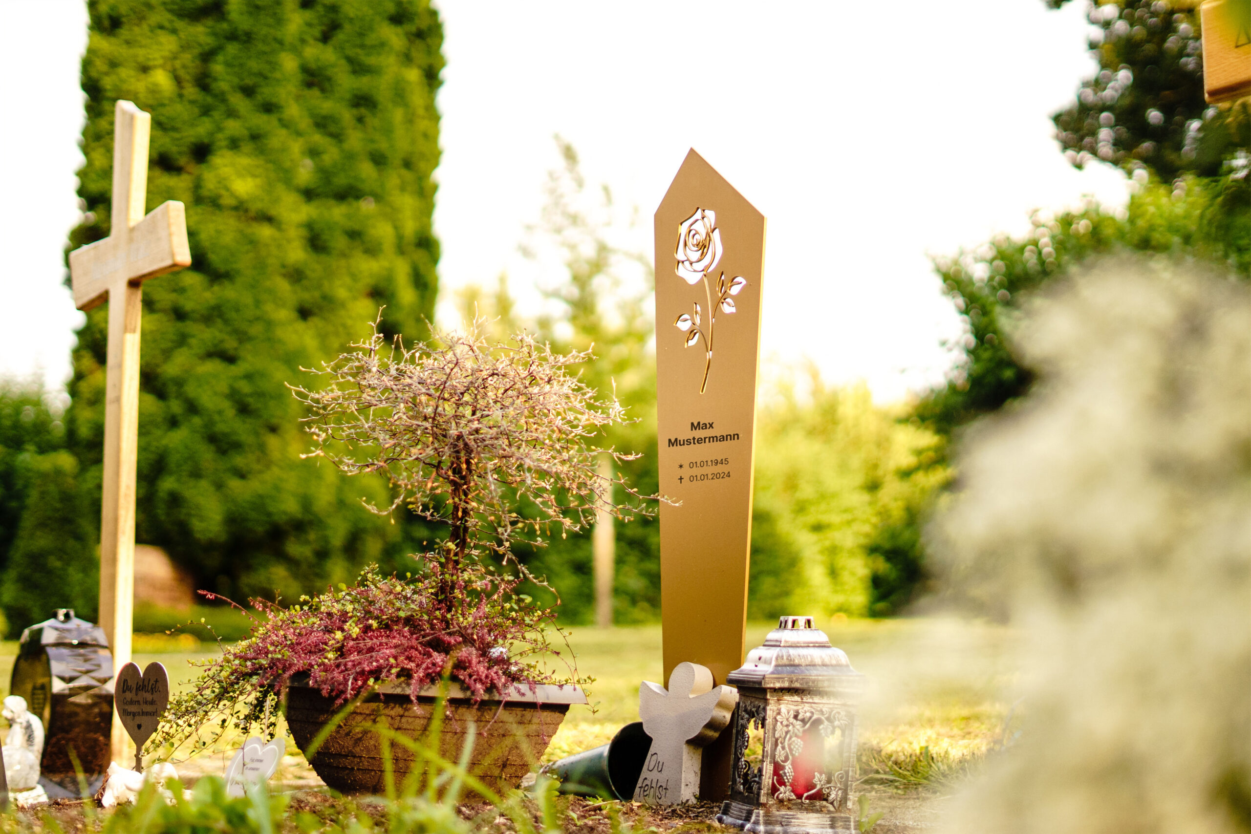 Nach 1-2 Jahren muss in der Regel ein dauerhaftes Grabmal gesetzt werden. Da unsere Stelen sehr langlebig sind, eignen sich diese explizit auch als dauerhaftes Grabmal.